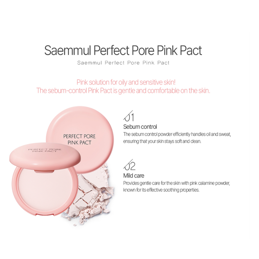 El polvo compacto Perfect Pore Pink Pact es eficaz para el control del sebo y el sudor, diseñado para refinar los poros y presentar una piel limpia y sin imperfecciones. Este producto no solo ayuda a controlar el brillo, sino que también proporciona cuidado hidratante y calmante, gracias a su fórmula avanzada.