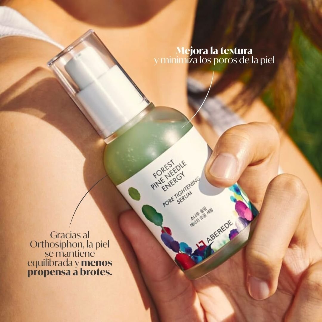 El ABEREDE Forest Pine Needle Energy Pore Serum está diseñado para quienes buscan un cutis más uniforme, equilibrado y con poros visiblemente reducidos. Su fórmula contiene extracto de hoja de pino ciprés, conocido por sus propiedades purificantes y calmantes, que contribuye a mantener la piel fresca y libre de exceso de grasa.