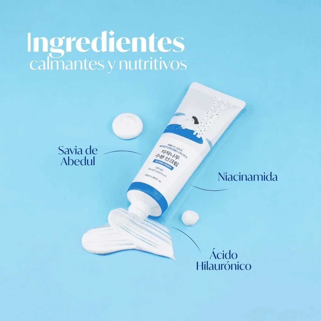 El protector solar más vendido en Corea durante años, el BIRCH JUICE MOISTURIZING SUNSCREEN de ROUNDLAB, es un protector solar hidratante que ofrece una potente protección de amplio espectro (SPF 45+) contra los dañinos ratos UVA y UVB, mientras que también otorga una hidratación ideal para el día a día.