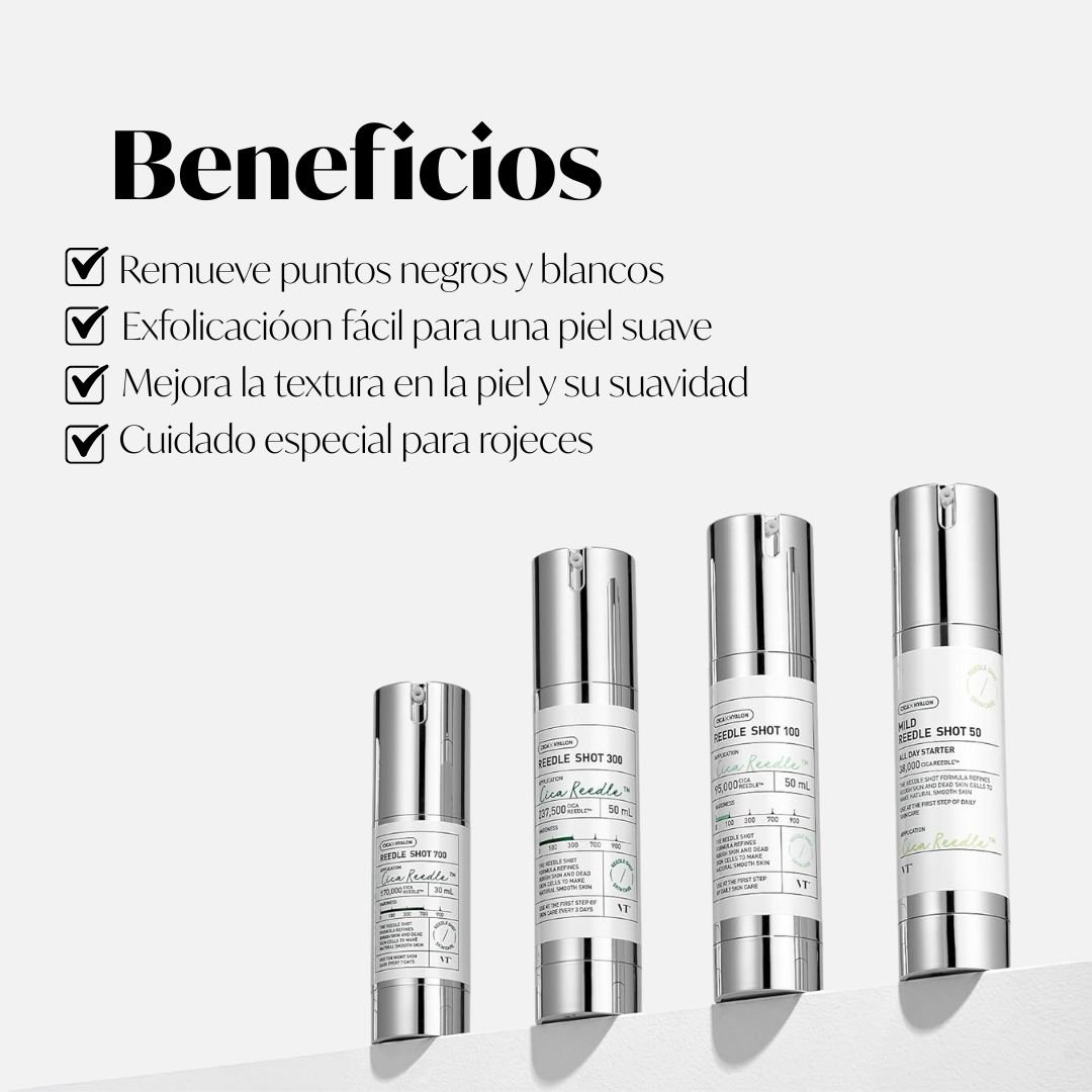 El Reedle Shot 300 de VT Cosmetics es un tratamiento avanzado con microagujas cosméticas que multiplica la eficacia de la rutina de cuidado facial. Diseñado para proporcionar una estimulación más profunda que el Reedle Shot 100, este booster ayuda a mejorar la absorción de los activos y promueve la renovación celular desde las capas más internas de la piel.